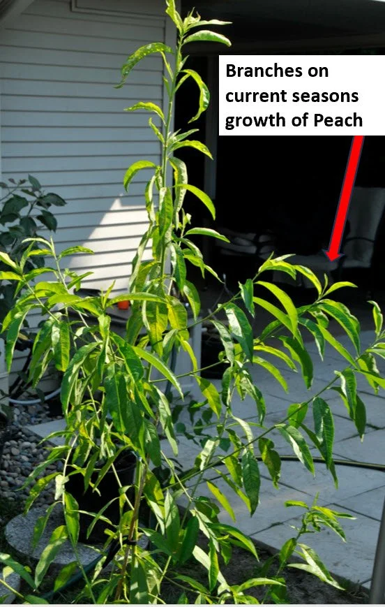 Peaches, Nectarines and Almonds all have low Apical Dominance so they produce multiple lateral shoots on current seasons growth. Since a dormant bud is not produced before these lateral shoots start to grow there are no bud scale scar rings at their base as most shoots do.